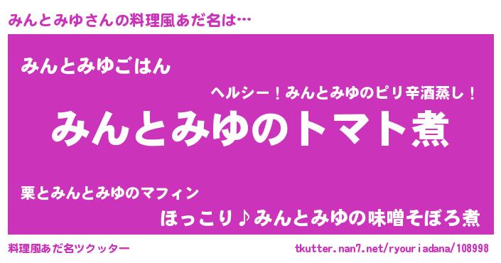 | ヘコむあだ名 | 『みんにゅー』『みんとみゆ(笑)』 |