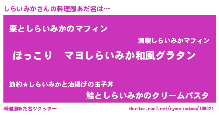 | 意味不明あだ名 | 『住所不定無職しらいみか(91歳)』 |
