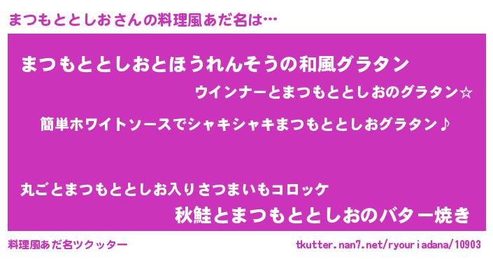 | 男性向けラノベタイトル風あだ名 | 『まつもととしおの嫁は女の子じゃないと思った?』 |
