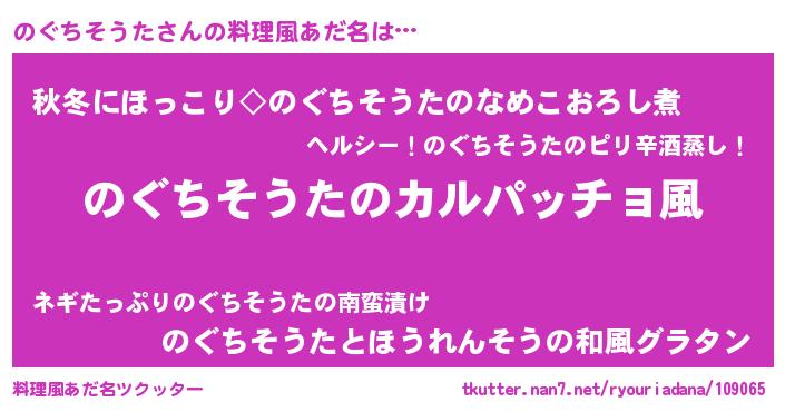 | 男性向けラノベタイトル風あだ名 | 『魔弾の王とのぐちそうた』 |