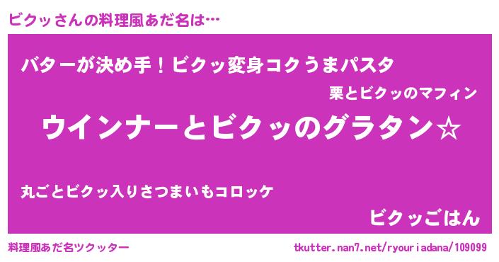| ヘコむあだ名 | 『豆乳』『ビクお』『ビクふぇ~』 |