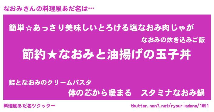 | 意味不明あだ名 | 『ペロリンなおみ』『永久保存なおみ』 |