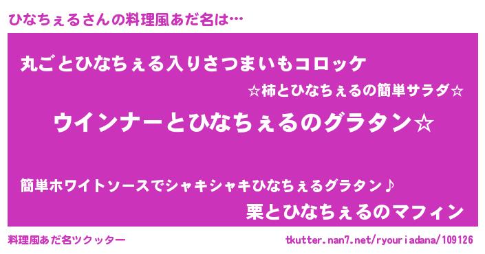 | 意味不明あだ名 | 『ひなちぇるフォーエバー』 |