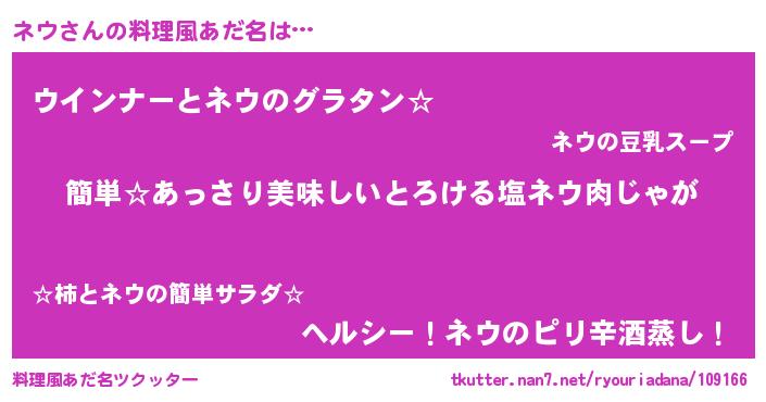| ヘコむあだ名 | 『ネウ(震え声)』『なまこ酢』 |