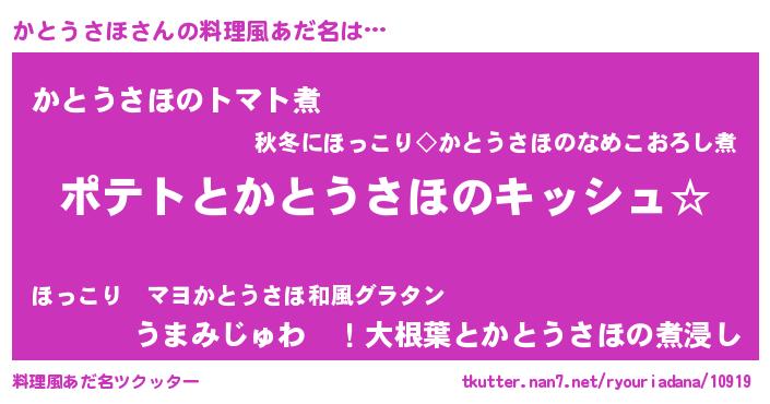 | 男性向けラノベタイトル風あだ名 | 『かとうさほの嫁は女の子じゃないと思った?』 |