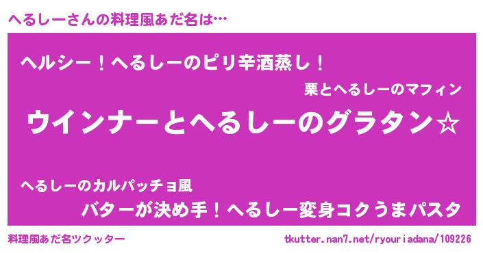 | 意味不明あだ名 | 『へるしーフォーエバー』『自称へるしー』 |