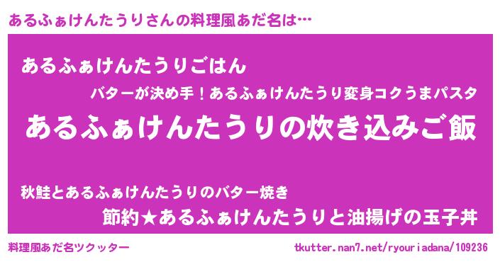 | 欧米人風あだ名 | 『あるふぁけんたうり・ステッグマイヤー』 |
