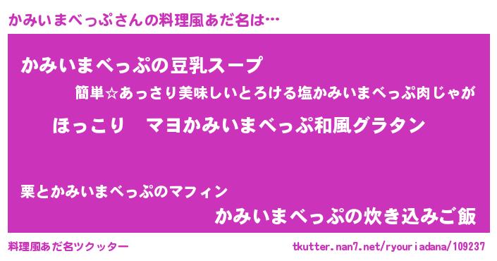 | 男性向けラノベタイトル風あだ名 | 『この素晴らしい世界にかみいまべっぷを!』 |