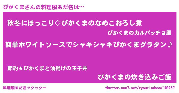 | 男性向けラノベタイトル風あだ名 | 『ぴかくまの嫁は女の子じゃないと思った?』 |