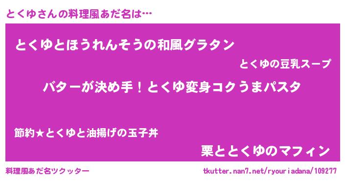 | 女子向けラノベタイトル風あだ名 | 『とくゆ恋絵巻』『とくゆの玉の輿計画!』 |
