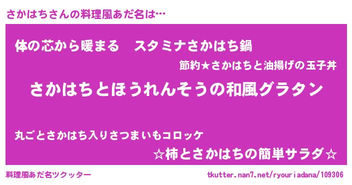 | ヒーロー風カッコイイあだ名 | 『ウルトラさかはちマン』『仮面サカダー』 |
