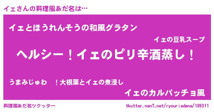| ヘコむあだ名 | 『イェっぺ』『なまこ酢』『イェにー』 |