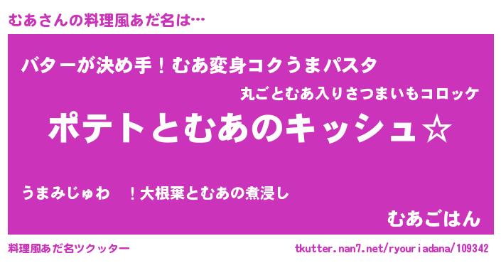 | 女子向けラノベタイトル風あだ名 | 『むあの卵を拾いまして』『むあ恋絵巻』 |