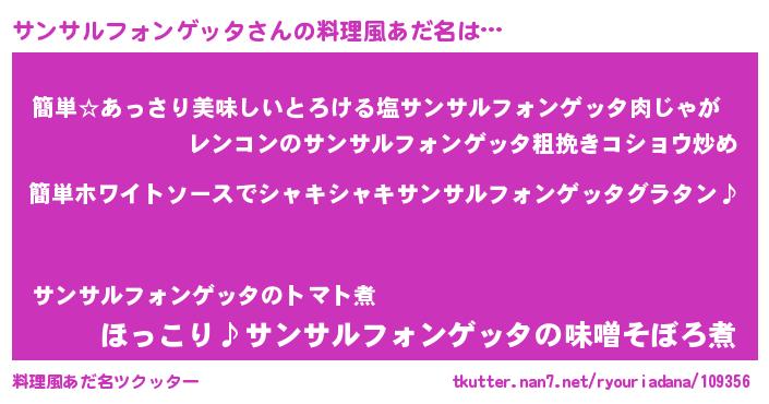 | 男性向けラノベタイトル風あだ名 | 『サンサルフォンゲッタの嫁は女の子じゃないと思った?』 |