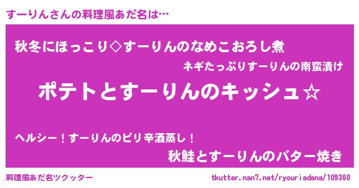 | ヘコむあだ名 | 『すーぷりん』『すーりん(笑)』 |