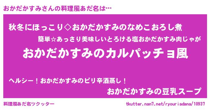 | 女子向けラノベタイトル風あだ名 | 『おかだかすみが死なない童話 林檎のおかだかすみの診療簿』 |
