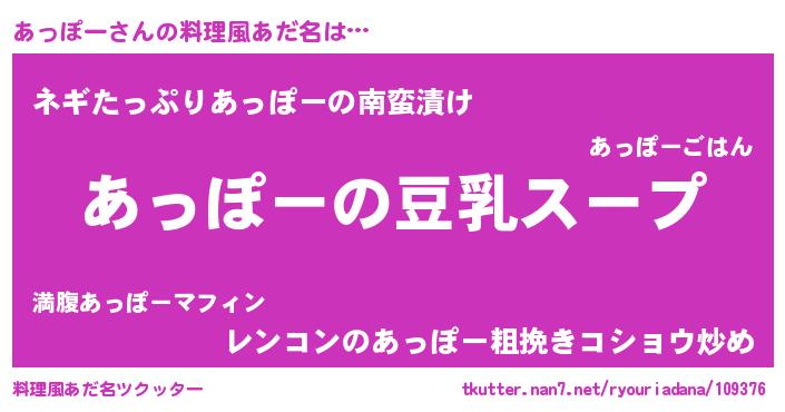 | 欧米人風あだ名 | 『ウサインあっぽー』『マイケルあっぽー』 |