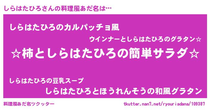 | 意味不明あだ名 | 『住所不定無職しらはたひろ(62歳)』 |