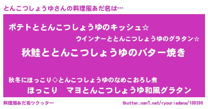 | ヒーロー風カッコイイあだ名 | 『ネオトンコツショウユ』『幻影騎士トン』 |