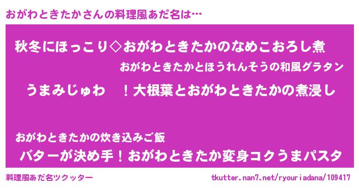 | 欧米人風あだ名 | 『おがわときたかクリステル』 |