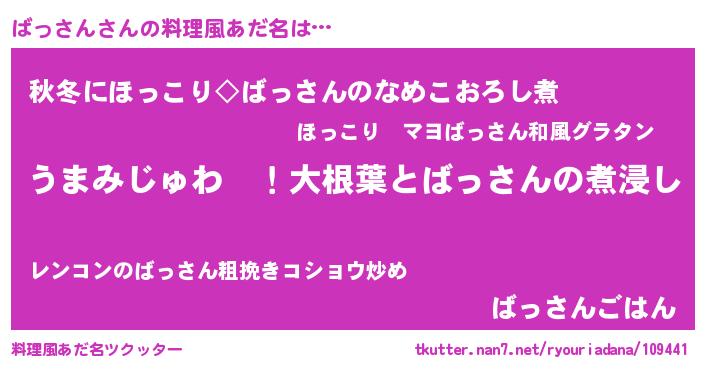 | 胡散臭い通販商品みたいなあだ名 | 『運命の人と巡り会える高級そうな皿…その名も「ばっさん」』 |