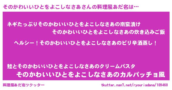 | 意味不明あだ名 | 『自称そのかわいいひとをよこしなさあ』 |
