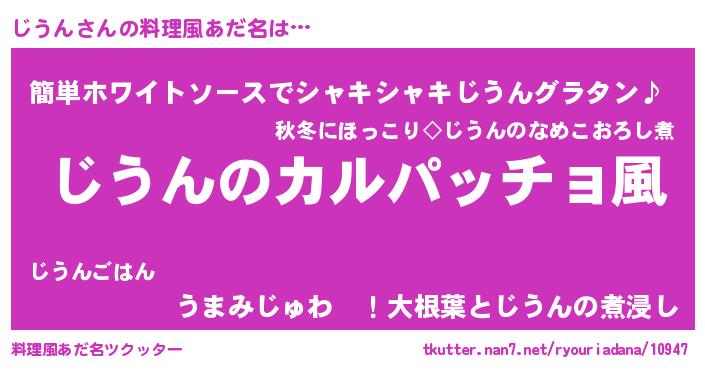 | 男性向けラノベタイトル風あだ名 | 『魔弾の王とじうん』『ジウンスレイヤー』 |