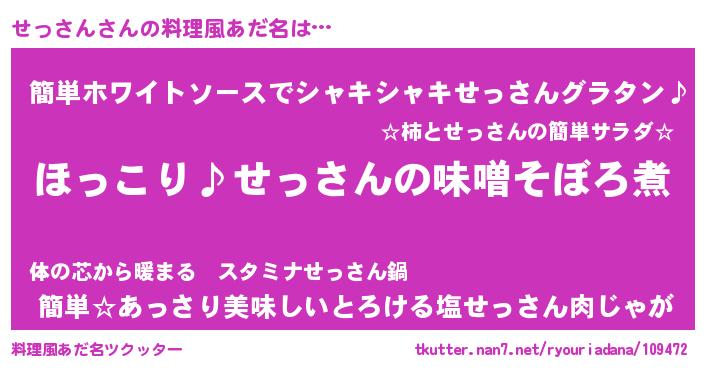 | 胡散臭い通販商品みたいなあだ名 | 『必ず成功するブレスレット…その名も「せっさん」』 |