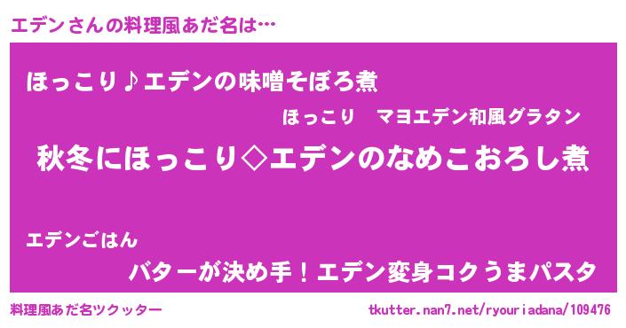| 女子向けラノベタイトル風あだ名 | 『横柄エデンと宰相陛下』『エデン恋絵巻』 |