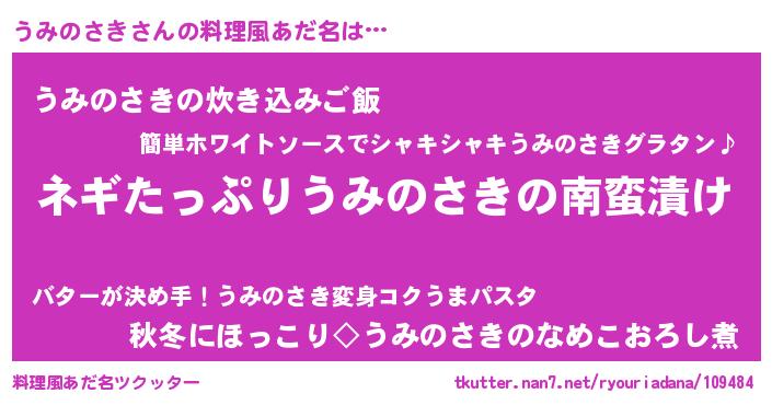 | ヘコむあだ名 | 『うみにー』『うみを』『豆乳』 |
