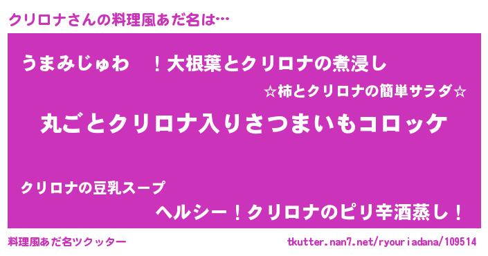 | 意味不明あだ名 | 『住所不定無職クリロナ(56歳)』 |