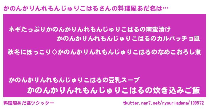 | 男性向けラノベタイトル風あだ名 | 『かのんかりんれもんじゅりこはるに滅ぼされるだけの簡単なお仕事です』 |