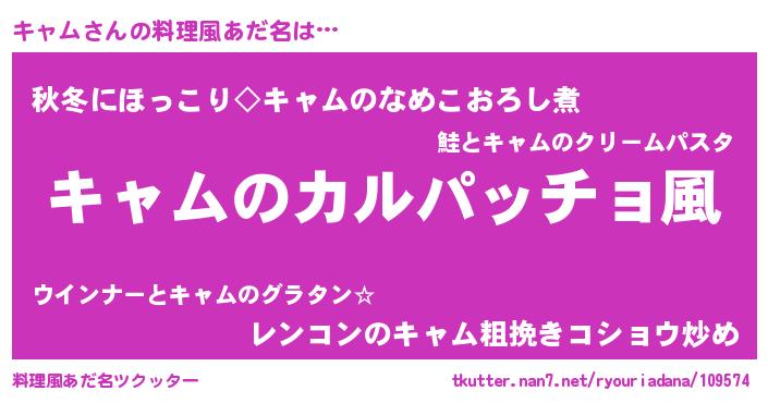 | 意味不明あだ名 | 『住所不定無職キャム(85歳)』『自称キャム』 |