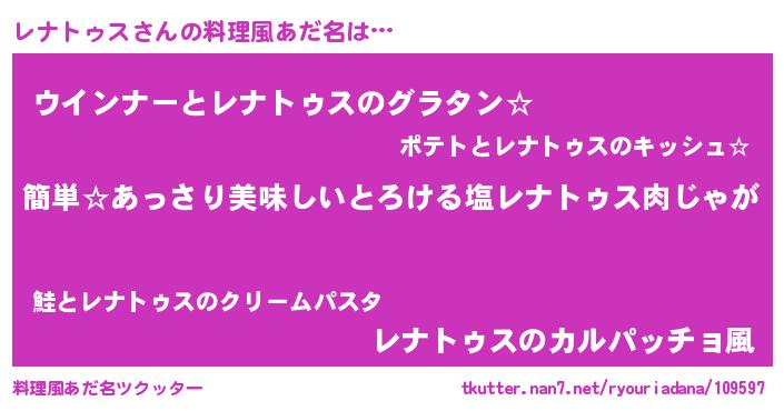 | ポケモン風あだ名 | 『ゼニレナ』『レナトダネ』 |