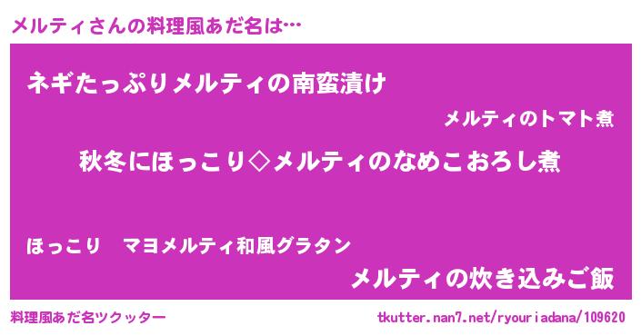 | ヘコむあだ名 | 『メルふぇ~』『メルティ(遠い目)』 |