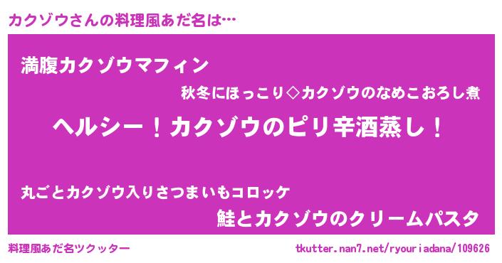 | 女子向けラノベタイトル風あだ名 | 『闇のカクゾウ』『死神カクゾウの再婚』 |