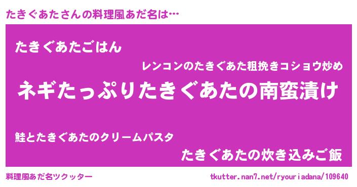 | 意味不明あだ名 | 『ペロリンたきぐあた』『自称たきぐあた』 |
