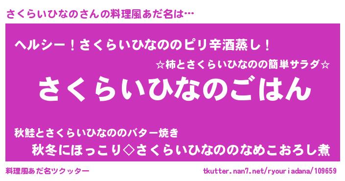 | 男性向けラノベタイトル風あだ名 | 『サクライヒナノスレイヤー』 |