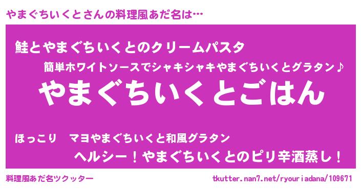 | ヘコむあだ名 | 『やまぷりん』『やまぐちいくと(爆)』 |