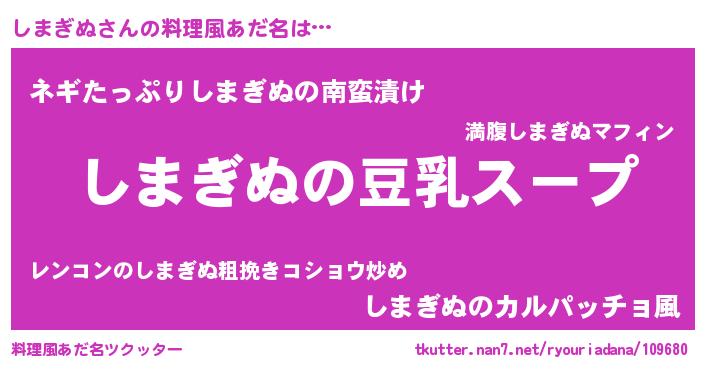 | 胡散臭い通販商品みたいなあだ名 | 『信頼と実績のサプリメント…その名も「しまぎぬ」』 |