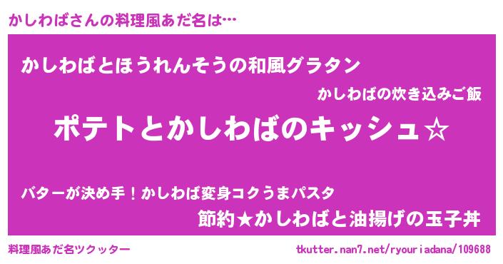 | 意味不明あだ名 | 『とにかく怪しいかしわば』 |