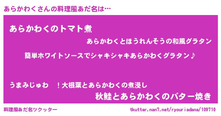 | ヒーロー風カッコイイあだ名 | 『炎刃騎士アラ』『友情の使者あらかわく』 |