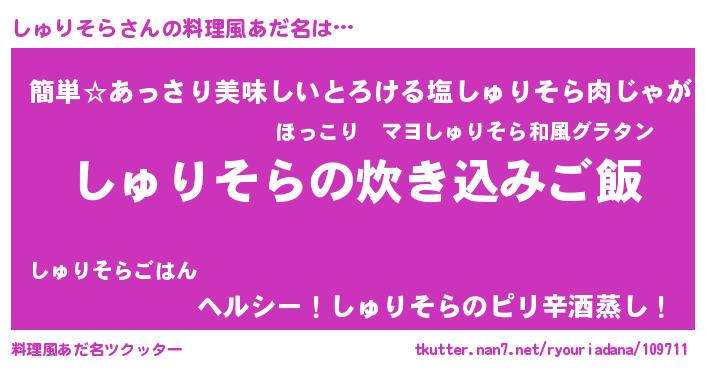 | 意味不明あだ名 | 『永久保存しゅりそら』『自称しゅりそら』 |