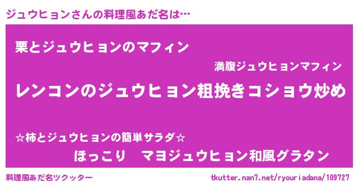 | 意味不明あだ名 | 『自称ジュウヒョン』 |