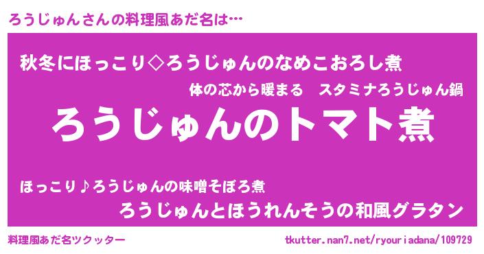 | 女子向けラノベタイトル風あだ名 | 『ろうじゅん夫妻のなれそめ』 |