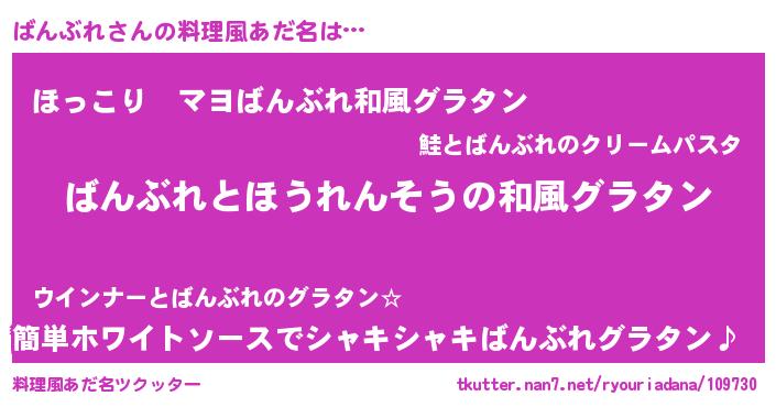 | 女子向けラノベタイトル風あだ名 | 『ばんぶれの玉の輿計画!』 |
