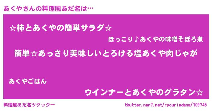 | 意味不明あだ名 | 『永久保存あくや』『あくやフォーエバー』 |