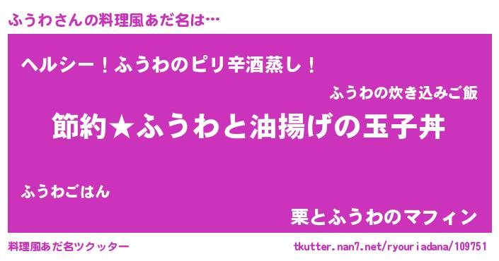 | 意味不明あだ名 | 『ペロリンふうわ』『自称ふうわ』 |