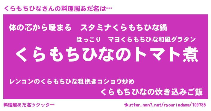 | 男性向けラノベタイトル風あだ名 | 『おまえをオタクにしてやるから、俺をくらもちひなにしてくれ! 』 |