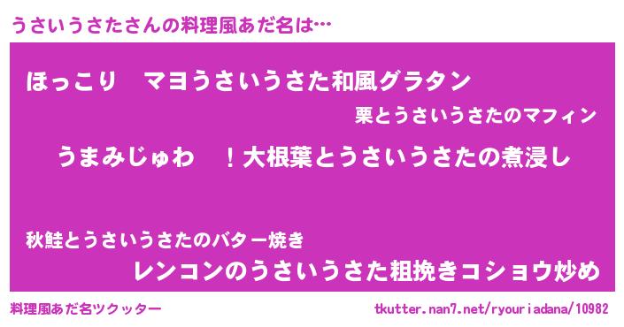 | 胡散臭い通販商品みたいなあだ名 | 『運命の人と巡り会える高級そうな皿…その名も「うさいうさた」』 |